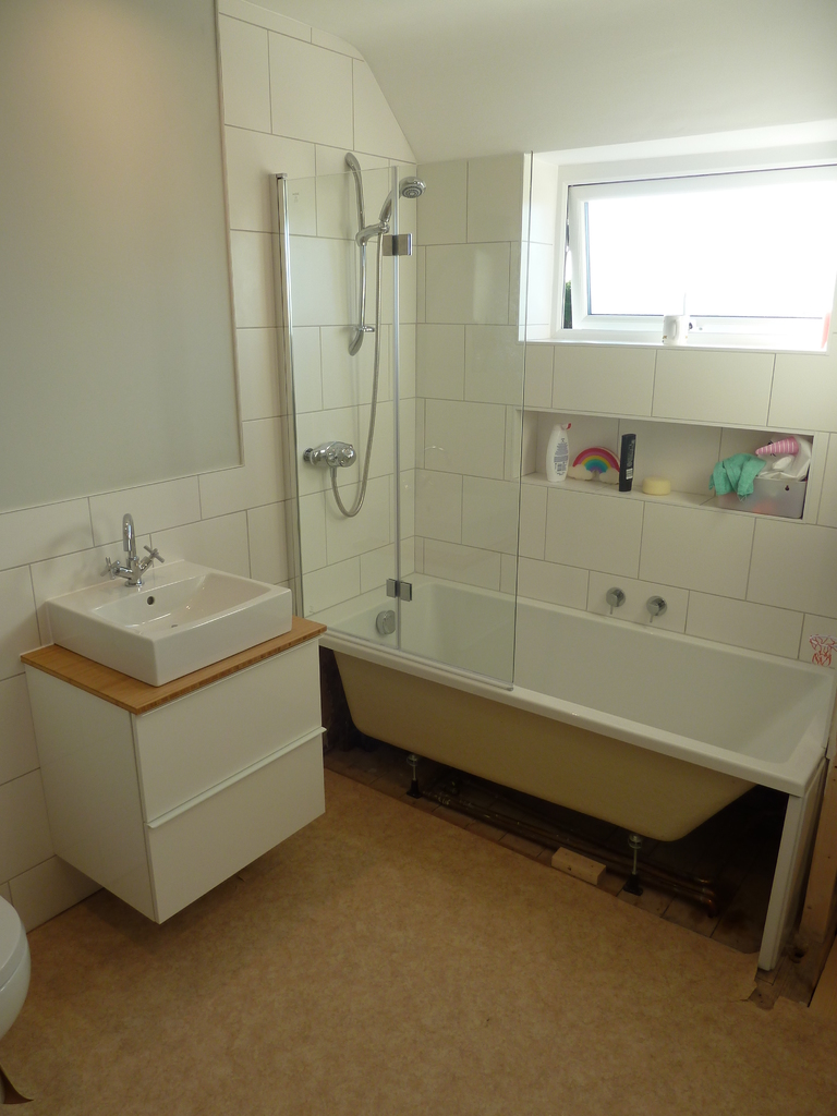 From here on out it was just a slog to get it done. There was 1 week where Rachael and Olivia went to stay with her parent’s for a few days, which was the point at which I ripped out the old bath and tried to get the new one in, but I’ll be honest it took longer than expected and we did need to ask to use friend’s showers for a few days while I got it all sorted.